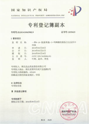 公司擁有一支高素質(zhì)科研隊伍,具備專業(yè)而高效的研發(fā)能力。近幾年,共取得科技成果30項,其中9項獲國家發(fā)明專利,2項獲湖北省科技進(jìn)步獎,開發(fā)新產(chǎn)品8個,綠色合成、手性合成和催化等技術(shù)引領(lǐng)行業(yè)發(fā)展。主要銷往歐美、日本、韓國、中東、印度等40多個國家和地區(qū)。