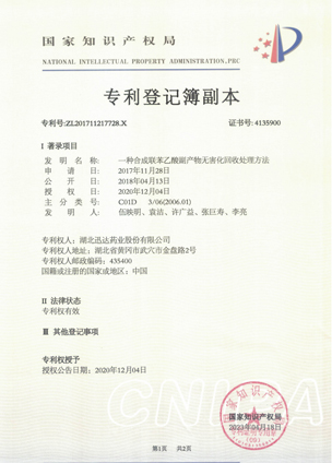 湖北迅達(dá)藥業(yè)股份有限公司是專業(yè)從事醫(yī)藥原料藥及中間體生產(chǎn)經(jīng)營的國家重點高新技術(shù)企業(yè),也是國家 4A 標(biāo)準(zhǔn)化良好行為企業(yè)、湖北省智能制造試點示范企業(yè)、湖北省國際科技合作基地、湖北省信息化與工業(yè)化融合試點示范企業(yè)、湖北省創(chuàng)新型企業(yè)、湖北省上市后備“金種子”企業(yè)、省級“專精特新”企業(yè)、上云標(biāo)桿企業(yè)。公司被評為湖北省醫(yī)藥工業(yè)五十強、湖北省醫(yī)藥行業(yè)創(chuàng)新型企業(yè)十強、湖北省醫(yī)藥行業(yè)出口型企業(yè)十強、湖北省優(yōu)秀企業(yè)、湖北省“重合同守信用”企業(yè)、湖北省模范勞動關(guān)系和諧企業(yè)、湖北知識產(chǎn)權(quán)示范企業(yè)、中國外貿(mào)出口先導(dǎo)指數(shù)樣本企業(yè)。
